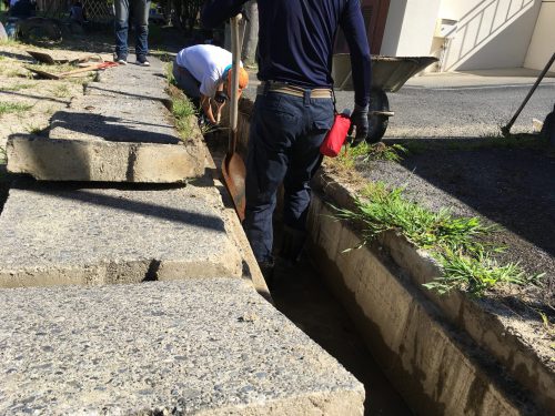 そこで少しでも安全に作業が捗るようこんな助っ人を投入しました。砂が噛みこんで溝蓋を上げるにもかなり固い部分があり人力では難しい部分も楽に引き上げられました。