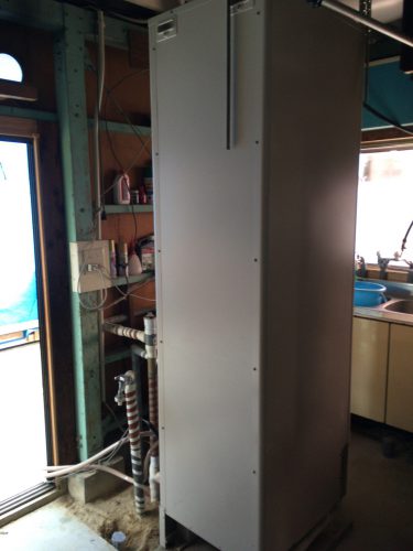 貯湯タンクを取外し、配管を新しいタンクに合うように変更していきます。