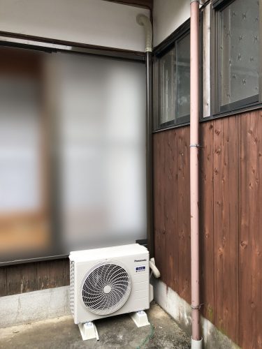 田舎の家はこのように縁側がありエアコンをつける場合配管をこのように縁側を通すことが多いです。真っ直ぐ通したくても縁側の向こうにも部屋があるとこのように配管を横引きしなくてはいけない状況も多いです。そんな時でも出来るだけ見栄えが良くなるよう心がけて工事をさせて頂いています。