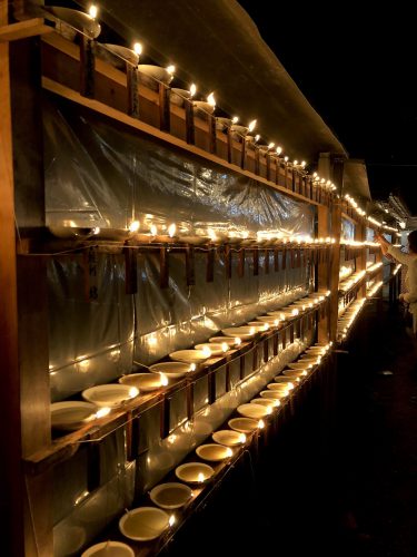 ごま油や菜種油に火をともして0時まで消えないように交代で火の番を行います。