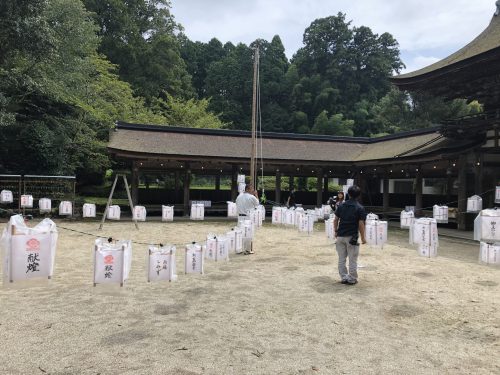 今日は朝から毎年9月13日に行われる油日神社大宮ごもりの仮設電気工事に伺いました。