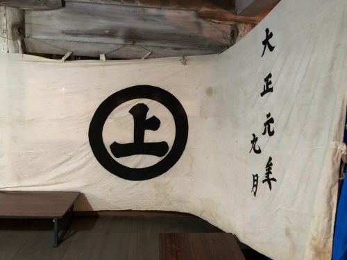 上野座に張った横断幕はかなり汚れていました。洗濯すればいいのに・・・と思いましたが「大正元年」と書かれています。言い伝えによれば一度も洗濯していないらしいです。そうなると汚れも貴重な歴史に思えてきます。所々補修されていますがこれからも受け継がれて言って欲しいと思います。