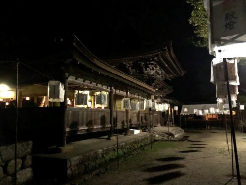 油日神社は廻廊がある珍しい造りで、最近ではドラマや映画のロケ地としても有名になっています。その廻廊周りに提灯を灯します。
