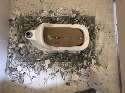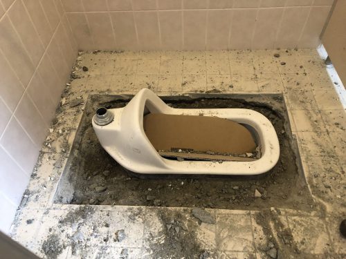 和式トイレが固定されていた部分を全て撤去してあとは持ち上げるだけです。