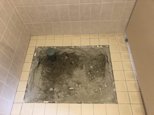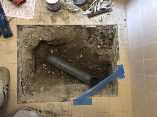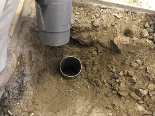 排水管の位置が決まったらしっかりと接着して埋め戻し作業を行います。