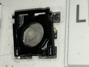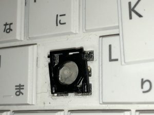 メーカーに修理を依頼するとキートップAssy交換で6000円以上かかると思われます。硬くてもグッと押し込むと入力できるという事だったので何か挟まっていると思いキートップを分解してみました。