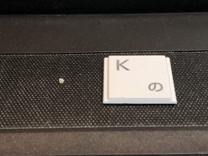 こんな小さな小石一つのせいでキーが使いにくくなっていました。キャリングケースに入れて運ぶ時にはこのような異物が入り込んでいないかたまには掃除してみてくださいね。