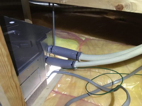 天井が仕上がるまでに冷媒配管をすればいいものを・・・