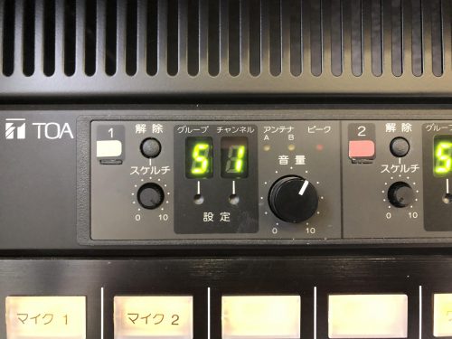 もしお使いのワイアレスマイクシステムで音声が途切れる場合はスケルチ調整ツマミが付いているか確認をしてくださいね。