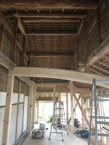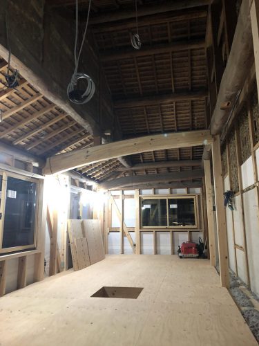 こんな感じの梁見せの古民家リフォームは電気配線が極力見えない場所に通すのがポイントです。その為に細かな打ち合わせが必要でいかに大工さんとのやりとりが密に取れるかが鍵になります。