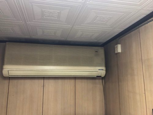 いつもお世話になっているお客様からエアコン取替のお話を頂き下見に行きました。その場所は高さ方向に余裕が無くてパッと見た目、本当にエアコンが取り付けられるのかな?と思える場所でした。