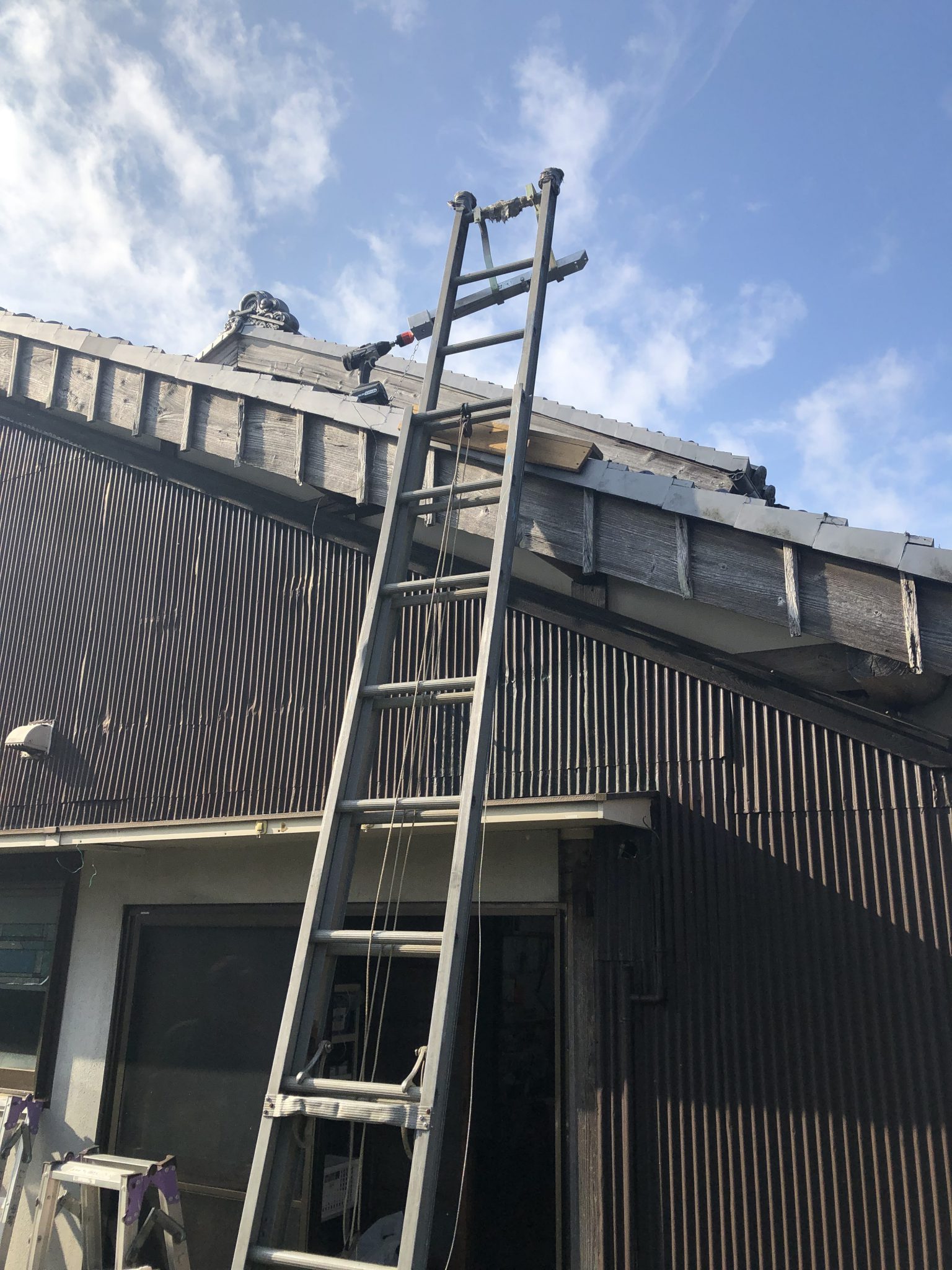 室外機はこの庇の上に設置させていただきました。2人作業を行ったので室外機施工の写真は残念ながら撮り忘れでありません。高い位置なので落下しないように専用基台でしっかりと固定をさせて頂きました。
