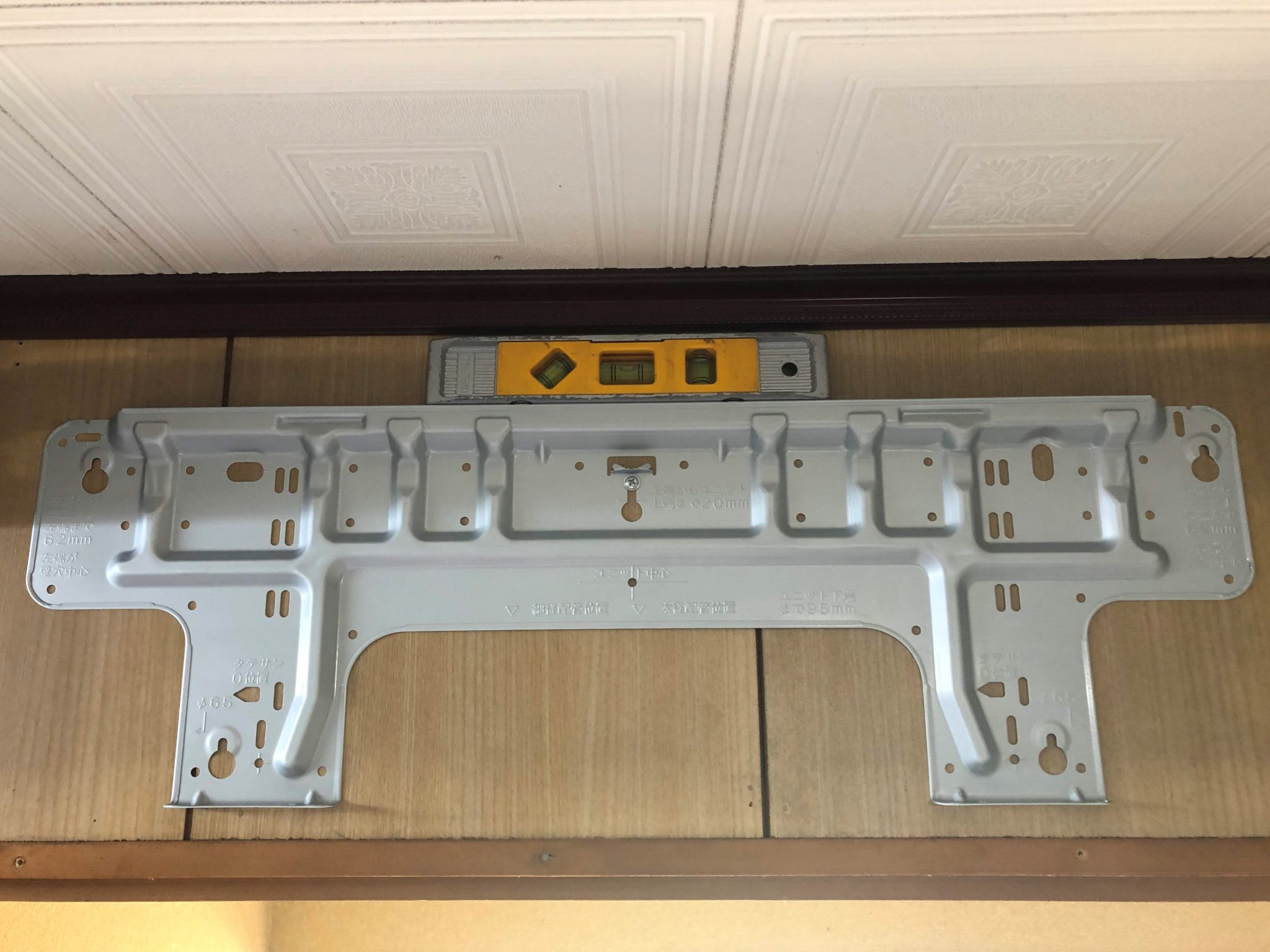 いきなり施工写真ですが、高さ抑え目のエアコンだとこんな感じでピッタリ納まります。