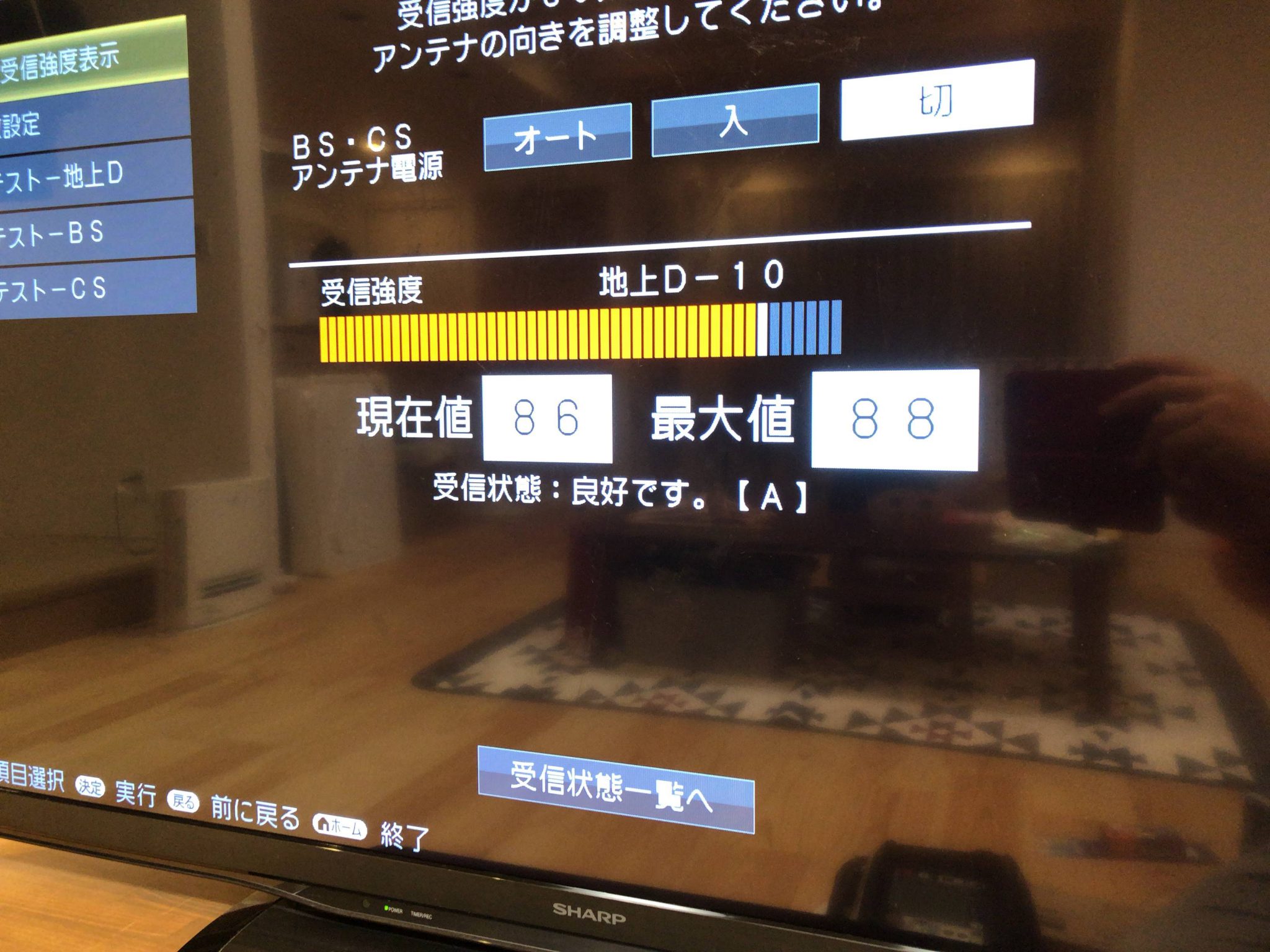念のためテレビでも受信レベルを確認。バッチリです!!