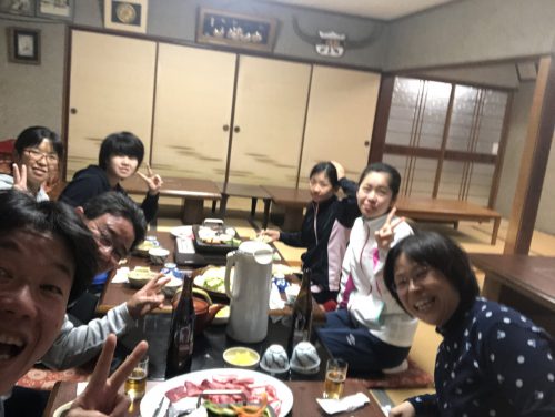 スキーが終わった後はみんなで楽しく焼肉をワイワイ言いながら〜