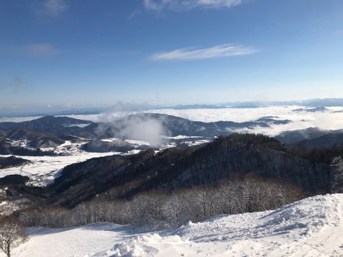 今日の奥神鍋高原の山頂は素晴らしい晴天で暑いくらいでした。気温も3月頃の陽気で今後の雪の心配を宿の方がされていました。これも地球温暖化の影響なのでしょうか?