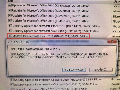 https://support.microsoft.com/ja-jp/help/4461627/january-2-2019-update-for-excel-2010-kb4461627