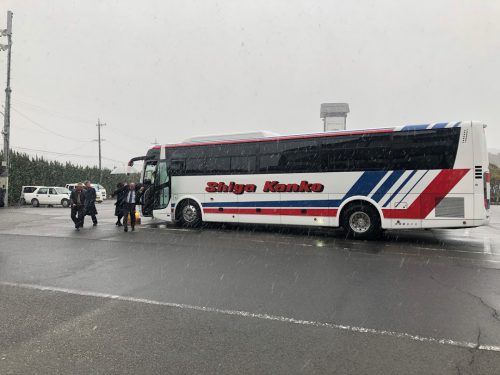 バスに乗ってもしばらく雪景色の中を進んでいきましたが、集結場所の名阪関ドライブインに着くころには小降りになっていました。