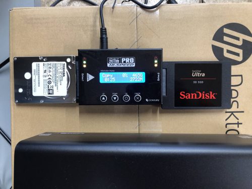 HDDの内容をそのままSSDに書き込み作業を行います。作業完了後元通り組み上げてテストを行いました。