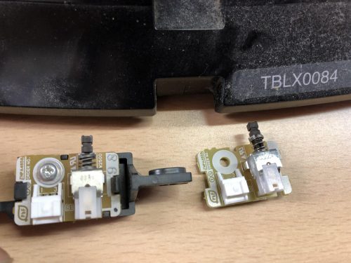 今回のトラブルはスイッチの不具合ではなくて、なんとこのスイッチボタンの割れが原因でした。事前に販売店しか見られない修理サポートページでこのテレビの「電源入らない」という不具合を調べたところ、なんと一番にこのスイッチボタンの不具合が上がっていました。200円の部品だったので念のために取り寄せていましたが結果的に一度の修理で完治する事ができて良かったです。