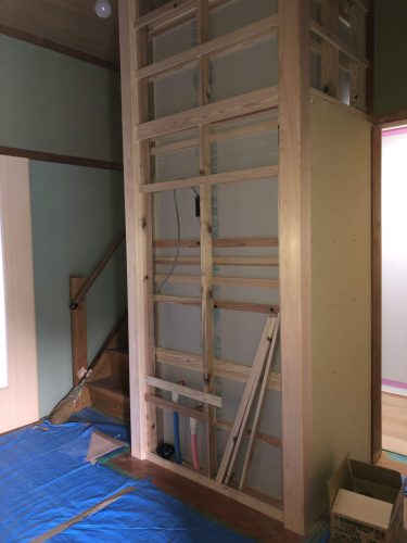 リフォーム工事も終盤になってきて大工さんとの競争になって来ました。お互いの邪魔にならないように工夫しながら作業を進めています。