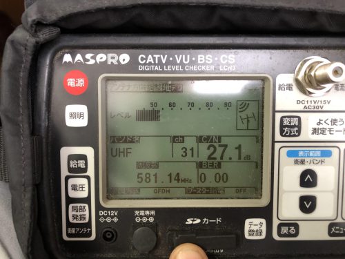 方向を微調整してしっかりと締め付けさせて頂きました。アナログ放送時代のハイバンドアンテナだったので甲賀市内の地デジ周波数帯は苦手です。室内のアンテナコンセントでこの電界強度なので良しとしました。