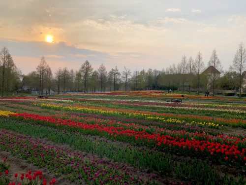 帰り際、夕日に映えるチューリップがめっちゃ綺麗でした。車で約30分の場所だけど凄く楽しかったです。