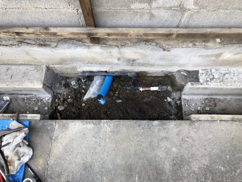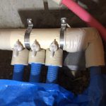 古い給水管は全て撤去して全て架橋ポリエチレン管で施工させて頂きました。床下点検口も取付ていざの時にはヘッダーで各所止水できるようなバルブも取り付けました。