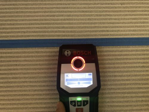 まずは壁面に取り付ける為に下地を探します。運よく取付予定位置に下地がありました。