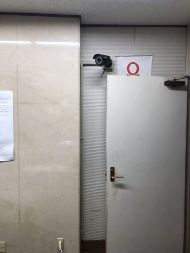 2ヶ所目は受付の近くに設置しました。近くのコンセントから電源をとっています。このカメラはマイクが内蔵されていて音声も記録する事が出来ます。
