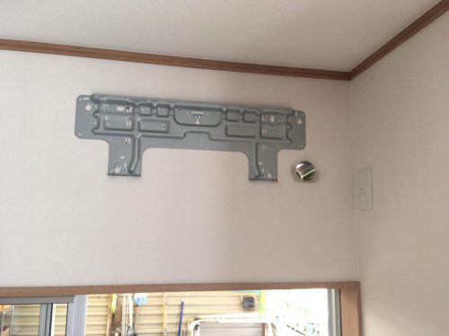 薄型機種ですが、スペースに余裕があるので従来タイプの室内機もそのまま取付できるよう考慮して穴あけさせていただきました。