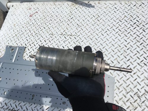 余談ですが、エアコンの配管を通す穴をあけるこの『コア』という道具をうっかり炎天下に置いてしまって素手で持ったら火傷しそうになりました。それくらい日差しの強い一日でした。次回から気をつけます。