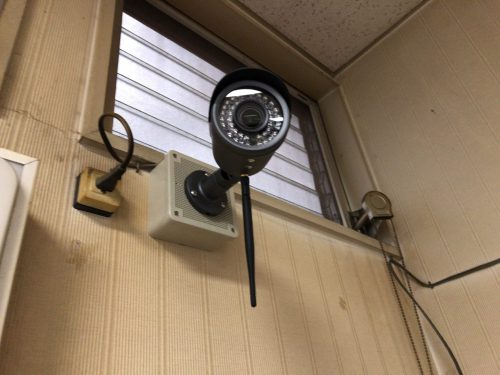 いつもお世話になっているお客様から会社に監視カメラを取り付けたいと相談いただきました。カメラの電源を確保すれば電波の届く範囲の中で使える業務用無線タイプの監視カメラを提案させて頂きました。