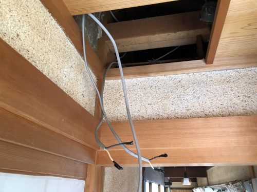 同時進行でエアコン専用回路の配線を行います。幸いなことに移設前の場所に電源を送っている場所が見つかったのでその配線を利用して移設先へつなぎ換えます。