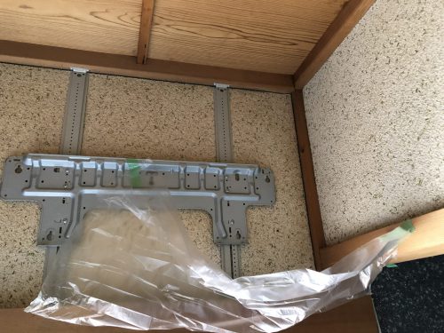 まずは取り外したエアコンを取り付ける準備を行います。真壁なので縦さんを使って確実に固定します。