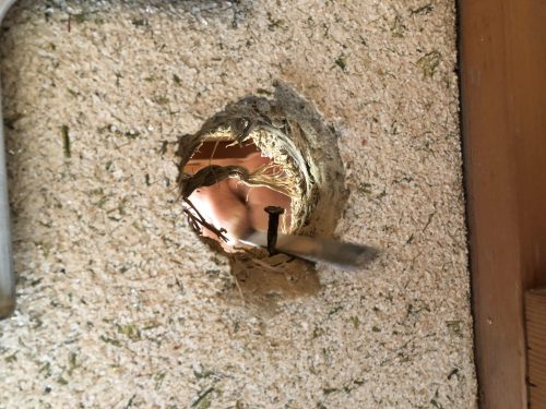 表裏から開けているときに何か引っかかるなと思っていたらごっつい釘が出てきました。勢いで開けるとこういう物に引っかかって壁自体が壊れる事もあるので慎重に作業を行います。