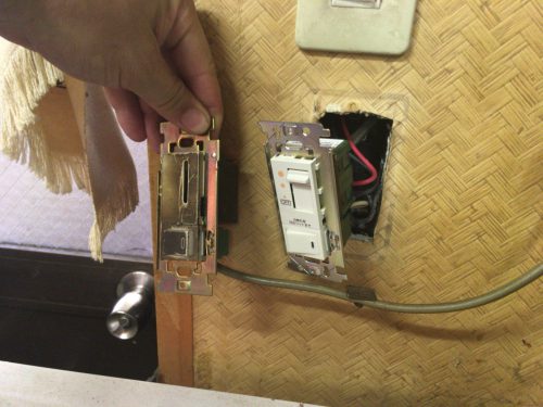 明るさを自由に調節できるスイッチのツマミが折れたので同等品へ交換させていただきました。LED器具には対応していないスイッチなので注意が必要です。