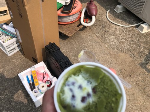 朝方は肌寒かったのに日中は蒸し暑い~休憩時間に頂いた抹茶ミゾレがめっちゃ美味しかったです。嬉しかった