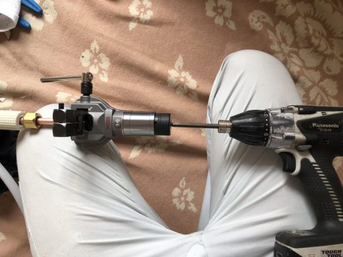 冷媒配管の接続加工は確実&時短の為に電動工具が使えるこのようなフレアーツールを使っています。