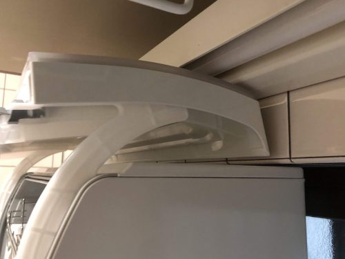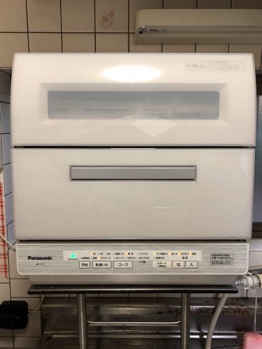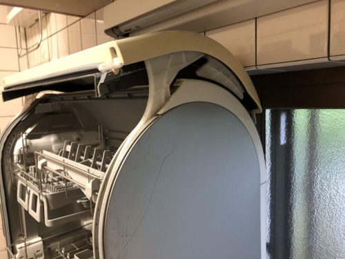 扉を開けたところ~本当にギリギリです。この機種しか入らないと思えるほど奇跡のクリアランスでした。食器洗い乾燥機は国内メーカーで唯一パナソニックだけになってしまいました。しかもこの高さに収まる現行商品はプチ食洗のみ。