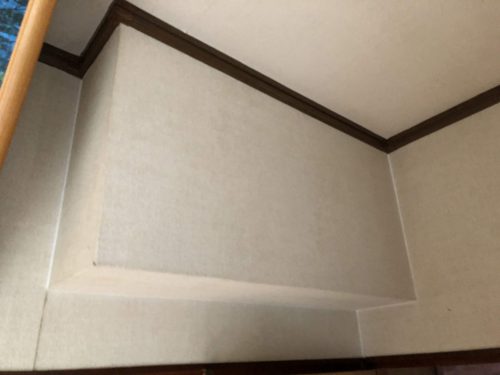 このエアコンを取り付けた後からリフォームされた様子で冷媒配管が縁側にあるこの壁の中に隠されていました。この隠された中に冷媒配管の接続部分があります。撤去するだけなら冷媒配管を途中で切断すればいいのですが取替となるとそうもいきません。下見の時にその事を説明させて頂き見積をさせて頂きました。
