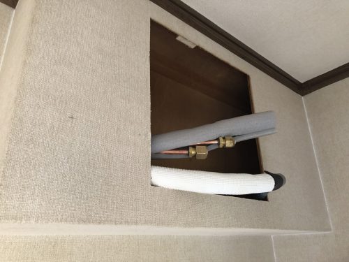 実際の施工はこのように壁を開口して冷媒配管を接続できるように処置しました。