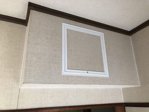 先ほど開口した部分は壁用点検口を取り付けます。くり抜いた部分を点検口の大きさに調整します。