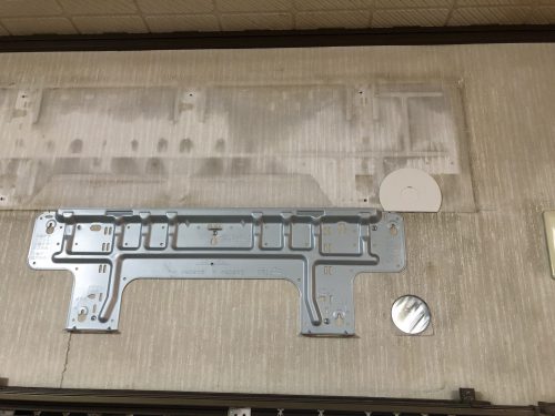 既設であった配管カバーを再加工して取付しました。貫通した部分はパテを使って気密性を確保します。