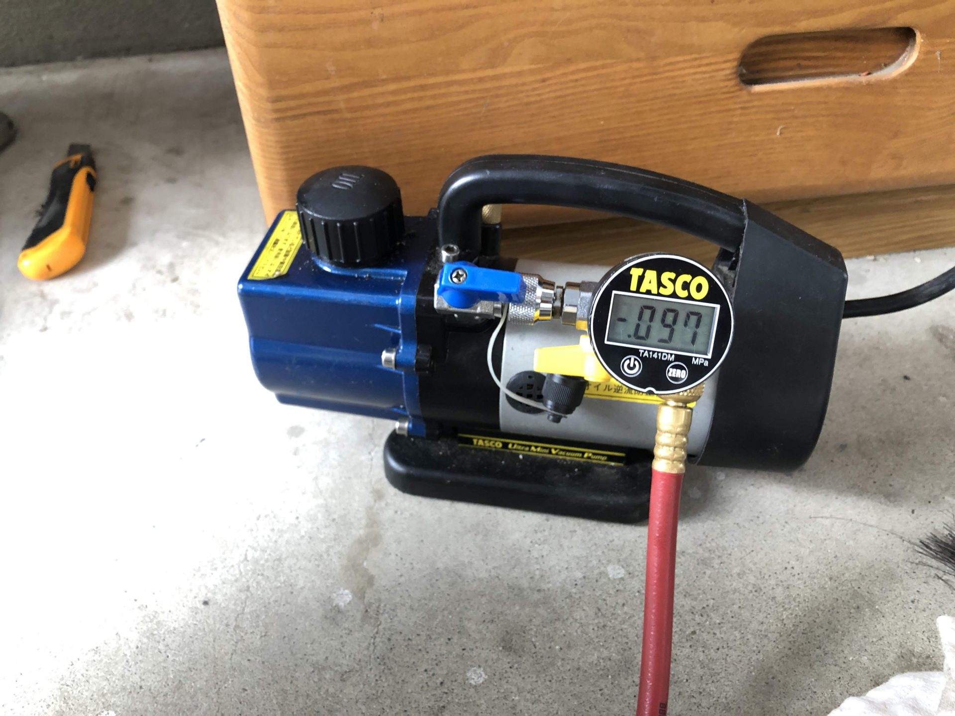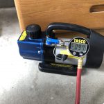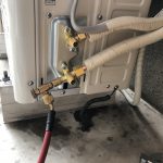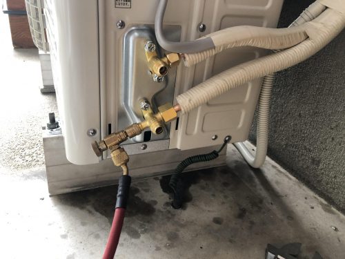 全ての配管が接続出来たら真空ポンプで配管内の空気を抜いてしっかりと乾燥させます。