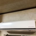 どうにか古いエアコンを外すことが出来ました。天井が高いお家で下方向に余裕があるので既存の穴を塞いで新たに穴を開けたいと思います。