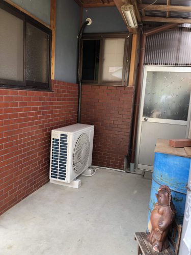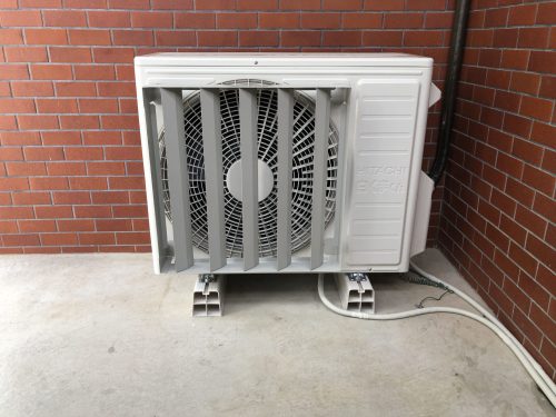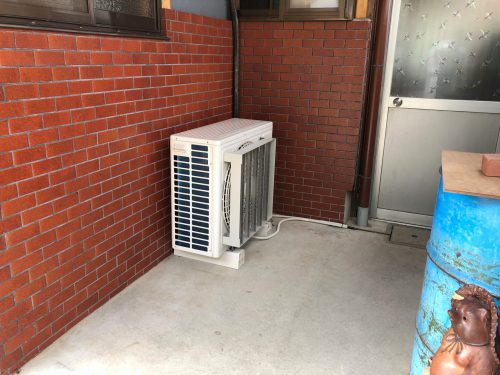 お盆前にエアコンを取付けさせていただいたお客様から使い方について問い合わせを頂いて説明に伺った時に、室外機の周辺が今までに比べて暑いから何とかならない?と相談をいただきました。