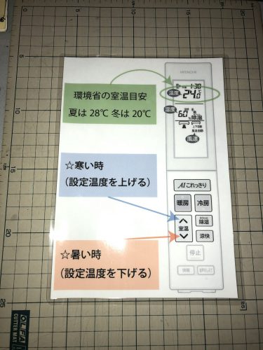 あと、パッと見て分かる簡単リモコン説明書を作ってパウチして一緒に届けました。めっちゃ喜んで頂けて嬉しかったです!!