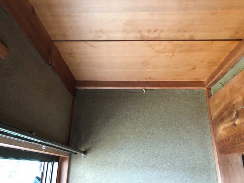この縁側の右側にエアコン室内機を取付て左側に室外機を取り付けます。右側真壁の高さが70mm、エアコン用ホールソー65φでギリギリです。