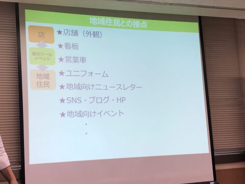 会場到着後さっそく勉強会へ。各店が地域の方どの様にして絆を作っているのか~参加した店の代表者が一人ずつ発表しました。